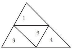 Приведём здесь элементарное доказательство, не использующее теорию интегралов. Доказательство сводится к тому, чтобы показать, что центр масс треугольника лежит на одной из медиан; повторяя этот процесс ещё дважды, мы тем самым покажем, что центр масс лежит в точке пересечения медиан, которая и есть центроид. Разобьём данный треугольник \(T\) на четыре, соединив середины сторон, как показано на рисунке: